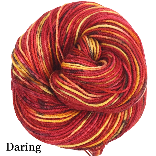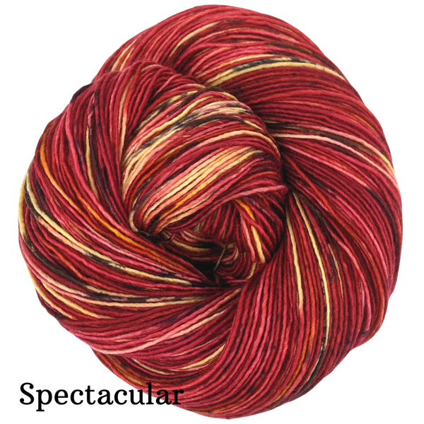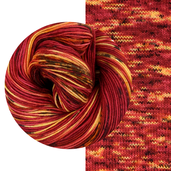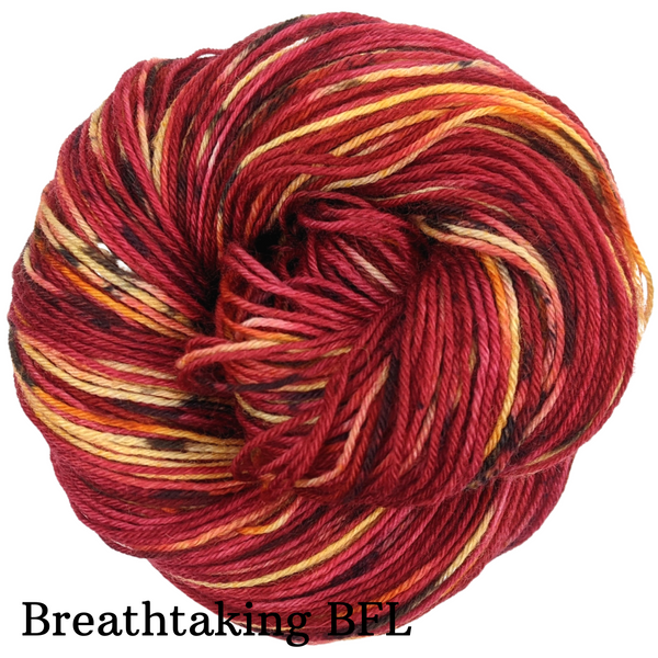 This yarn is ready to ship from our dye studio to your favorite knitting chair! Please see below for the fiber content and yardage of available skeins.